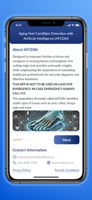 The Aging Feet Condition Detection with AI app provides information to assist healthcare professionals in making informed decisions but does not replace professional medical diagnosis or treatment. It helps ensure timely foot care for the elderly by identifying potential problems that may require further examination.