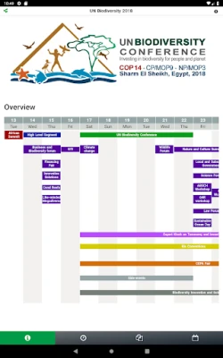 Information on CBD/UN Biodiversity conferences and related events is available to you at the touch of your finger. Access important information including agendas, descriptions, in-session documents and activity dates and times. You can create a custom schedule to help you manage your time while at the event or download documents to read on the go or offline. Provided by the Secretariat of the Convention on Biological Diversity (SCBD).
