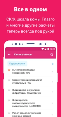 Кроме полезных медицинских калькуляторов в приложении можно найти: